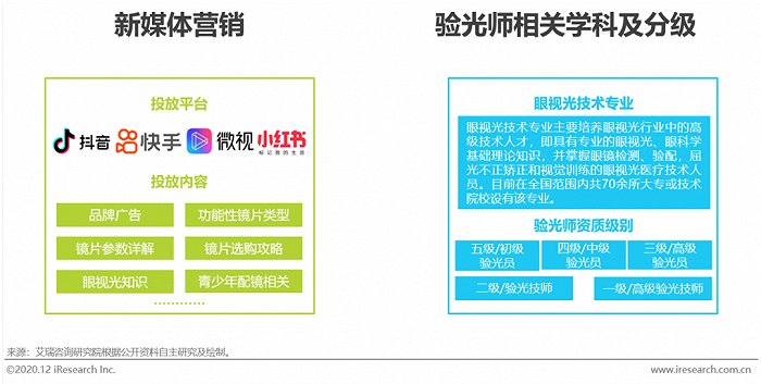 近年来,以短视频为代表的新媒体网络营销在国内快速兴起,而在眼镜零售端,大部分零售商还处于地推或向电商零售努力,有效利用短视频作为载体开展营销活动的玩家并不多,在行业竞争持续加剧、销售成本居高不下、进店人数不足的背景下,眼镜零售端应该把握时机、转变思路,开拓新的营销方式与营销渠道。在创新营销方式的基础上,用户到店体验是眼镜零售端实现价值的核心,而体验的优化来源于线下零售店导购及验配人员的专业服务水准。眼镜零售商应一方面适当提高从业人员的准入门槛,另一方面积极向上游供应商寻求合作与支持,加强知识传授与人员培训,扩大验光师及验光员的规模,注重培养与提升其专业素养,确保用户到店后能够按照自己的需求购买到佩戴舒适且视力矫正效果良好的眼镜。
