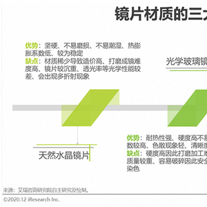 眼镜的核心功能主要体现在镜片上。镜片是一种融合了数学、光学、有机化学、表面及结构物理、机械加工、医学等学科的产品,对于矫正视力、调节进入眼睛的光量、保护眼睛安全具有至关重要的作用,是眼镜功能属性的核心载体。镜片的技术含量和品质主要体现在材料、光学设计和镜片膜层三个方面。