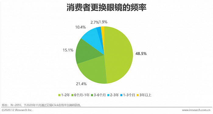 消费者对眼镜的需求不断升级,更换频率达到1.3年/次