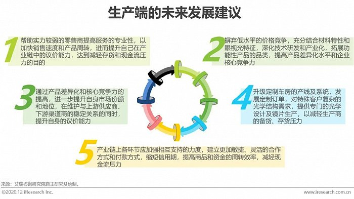 由于眼镜零售端具有明显的区域性、分散性经营特点,呈现长尾的市场形态,一些规模较小的零售商自身缺乏提高专业服务的能力。而与之相对应的,生产端企业的行业集中度更高,头部企业具有完备的产业链和丰富的技术、人才资源,各方面实力较强,应当承担更多的市场责任,通过向下游零售商提供更多的专业设备、人员和产品培训,帮助实力较弱的零售商提高服务的专业性和市场教育的能力,加快销售速度和产品周转,进而达到减轻存货和现金流压力的目的,同时提升自己在产业链中的议价能力。