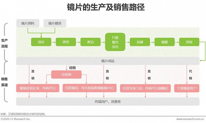 镜片的生产流程较长,销售渠道以直销与经销为主