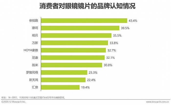 国际品牌占据优势,依视路、蔡司、万新、明月分列前四