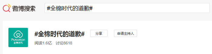 截至11日11时,新浪微博上#全棉时代的道歉#已有1.6亿阅读量。