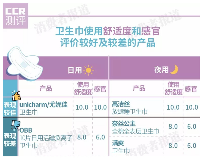 另外,2019年8月,上海消保委曾对市面热销的72款卫生巾(含34款日用、38款夜用)进行了比较测试。测评对卫生巾的使用舒适度,包括巾体表面的光滑性(肌感光滑性、抗摩擦力)、透气性进行了评价,结果显示全棉时代旗下的奈丝公主使用体验相对较差。