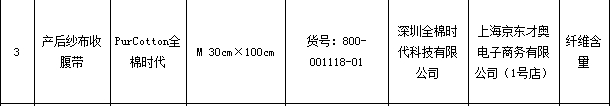 2018年3月,上海市质量技术监督局官网公布了上海市女性内衣产品质量监督抽查结果,其中“PurCotton全棉时代”产后纱布收腹带纤维含量不合格。