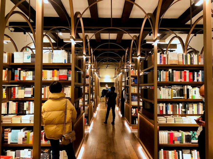 上海茑屋书店的一楼长廊,是许多人“拍照打卡”的必选项