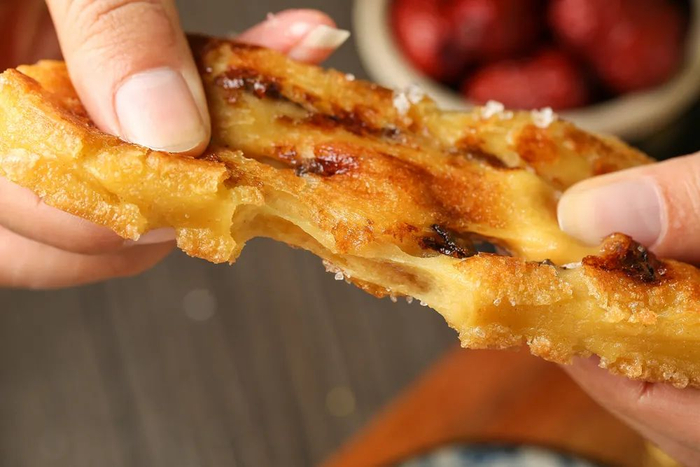 但小编更喜欢的还是滋滋作响的炸年糕,那口感和色泽都让人无法忘怀。咬一口,香酥入骨,满满的香甜瞬间炸开,不需任何搭配,原汁原味的美味。