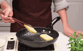 煎:平底锅刷油文火煎3-5分钟至软糯。