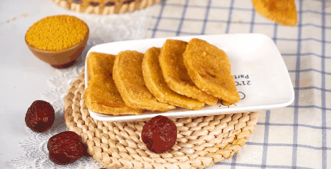 早餐的时候,煎上一盘黄米糕也是非常不错,更加省时间,不到3、5分钟,一道软糯可口的煎黄米枣糕就出现在眼前了。