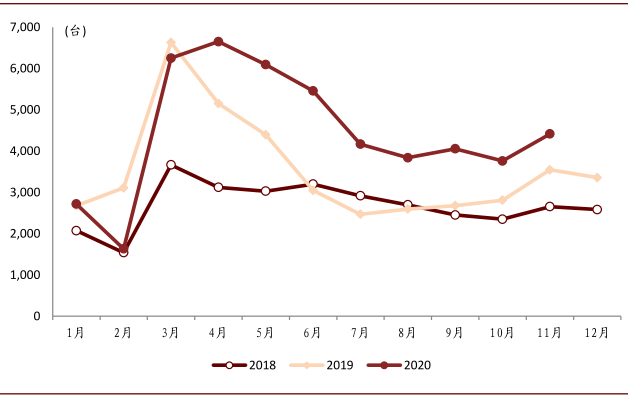 图表:2018-2020年汽车起重机月度销量