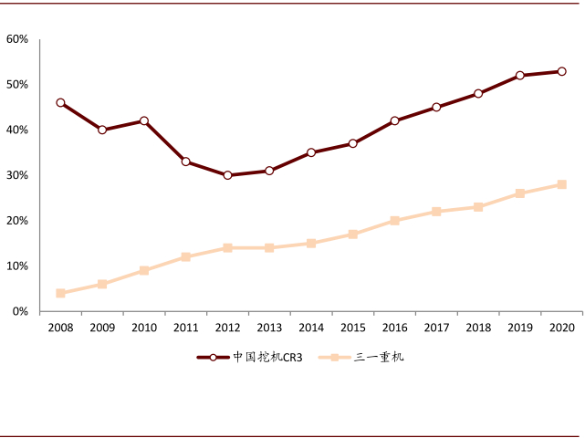 图表: 2020年我国挖掘机CR3达到53%