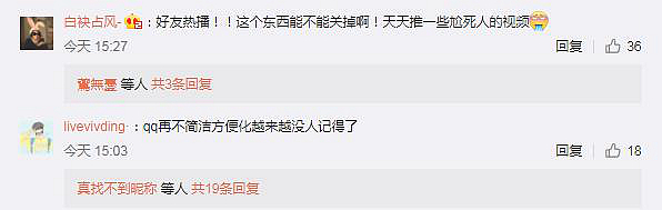 除此之外,也有不少网友对QQ的其他功能提出意见。有网友表示:“啥时候把QQ看点整治一下?”还有网友称,“QQ现在打开全是广告和垃圾营销内容”“QQ再不简洁方便化越来越没人记得了”。