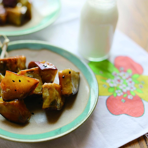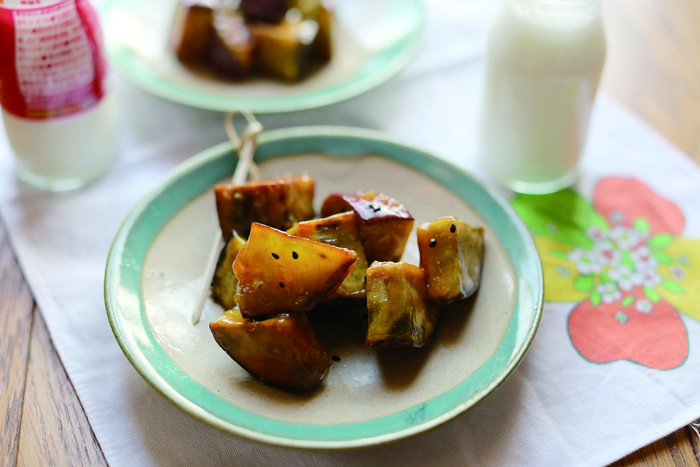 那天的大丰收,除了在地头现烤的红薯外,剩下的都装进了小朋友们提前准备好的布袋里,大家乖乖挂在脖子上带回家。在全家都吃腻了蒸红薯的时候,母亲会端出一道名为“大学芋”[daigaku imo]的点心:红薯带皮切块,油炸后浇上生抽和白糖制成的糖汁,最后撒上黑芝麻。是不是神似中国的“拔丝红薯”?至于这个名字的由来,记得在小学给食时段,班主任对大家解释过:“今天的给食菜单里有大学芋哦。同学们知道吗,红薯很有营养,多吃红薯,好好学习,考上东大[东京大学]不是梦!”现在想想,老师的这个说法有点忽悠,不过热乎乎的红薯,加上甜咸适口的糖汁,孩子们都很喜欢。若旁边同学盘子里的大学芋比自己的多两块,当日负责配餐的同学就会被批“不用心”。