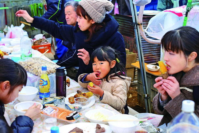 我父亲和近邻农友们一起办的“烤红薯大会 ”。还有用芋头做的味噌汤、自己种的花生等。吉井忍 图