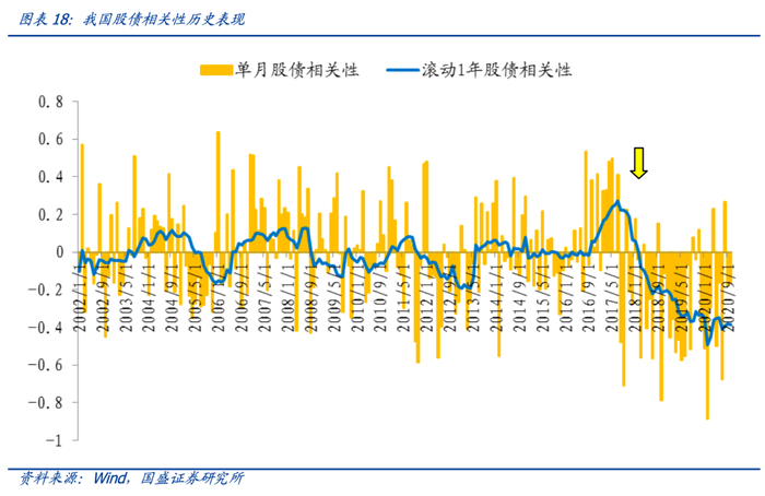 猜想2:外资进入、非标产品受限及我国金融市场机构化后对于股债比价关系重视程度上升,股债跷跷板效应增强,股债负相关性增强。