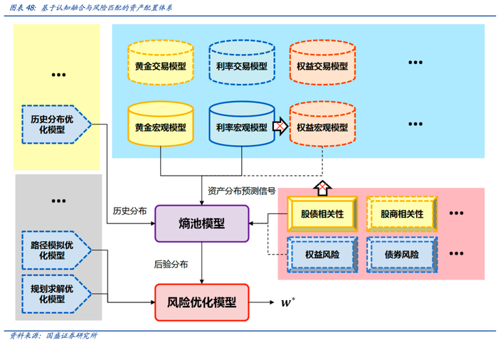 本报告进一步丰富了基于认知融合与风险匹配的资产配置体系。我们认为资产配置的本质困境在于我们对于资产未来的收益风险分布认知不足。因而通过1)不断提升对资产收益风险分布的认知;2)将各种形式的认知科学统一的量化融合;3)匹配认知水平与风险偏好,我们构建了基于认知融合与风险匹配的资产配置体系。