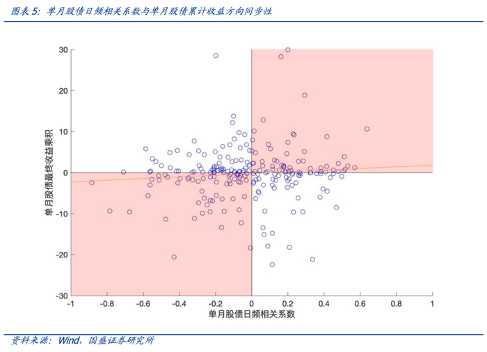 从相关系数的计算角度,我们可以通过重构相关系数的组成进一步理解总体相关性方向与单期样本方向一致性之间的关系: