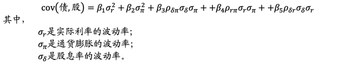 学术上对于股票和债券相关性的讨论同样聚焦于股债定价方式的讨论。耶鲁大学的Lingfeng Li曾在“Macroeconomic Factors and the Correlation of Stock and Bond Returns”(2002)中提出了股债相关性的理论决定因素模型。模型首先设计了股债作为资产大类的定价仿射模型(Affine Model),并由此推导出了股债协方差模型(具体推导详见相关论文):