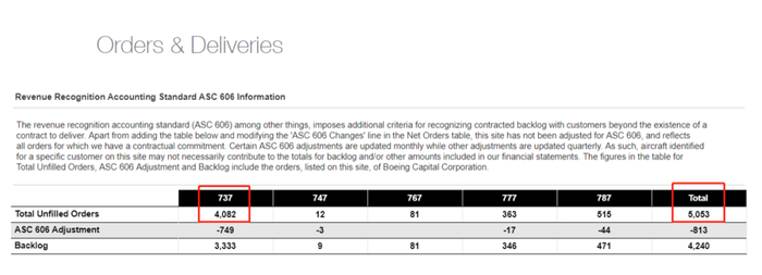 据波音官网数据,截至2020年11月30日,波音有5053笔未交付的订单,其中737系列高达4082笔。(图片来源:波音官网)
