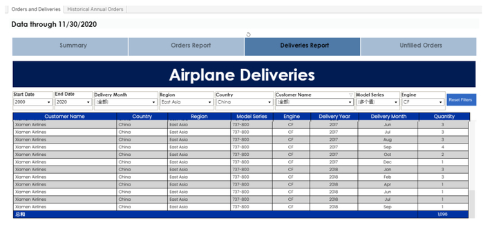 根据波音官网的数据统计,在2000年至2020年期间,波音总共向中国交付了1096架737系列飞机。(图片来源:波音官网)