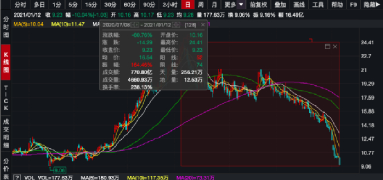 不过,南极电商抛出的重磅回购股份方案,并未能遏制住股价下跌势头。1月6日,再度大跌6%;1月12日,再度跌停。股价已从去年7月的历史高位累计下跌超60%。