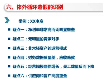 这份研报中一段关于“体外循环造假的识别”段落,尽管未点名南极电商,但市场普遍解读为针对的就是南极电商。报告提到XX电商存在造假的六大疑点,分别是净利率非常高而无明显壁垒、无明显的竞争对手、非常轻资产的运营模式、财务数据质量差,应收账款、经营规模翻倍增长,员工数量反而下降、供应商和客户高度重叠。