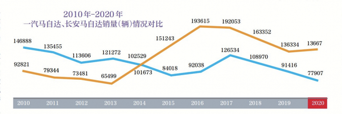 通过对比一汽马自达与长安马自达的销量走势不难发现,两家企业的销量分水岭正好出现在2015年。