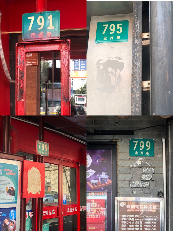 2020年11月2日,网友@韦恩君在微博上晒出一组上海市长宁区定西路美食一条街的照片,其中C位照片是一块写着“老铺 定西路餐饮一条街(1996-2020)”的古铜色铭牌。2020年12月21日,澎湃新闻记者联系到了@韦恩君,他告诉记者,自己拍摄的这张铭牌贴在定西路一家餐饮店的店招下。