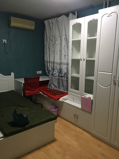我找到了一个房东直租的房子,不住家的房东女儿空出来一间卧室。房间有些狭小,窗户的一半视野被对面墙挡住,但好在家具齐全,衣柜、书柜、床和写字台都是定做的,严丝合缝地卡在里面。房东按着女儿在外面的租金每月收我2800元,水电费也不用我分摊,对于三环外近地铁的房子来说,这是非常实惠的价钱。