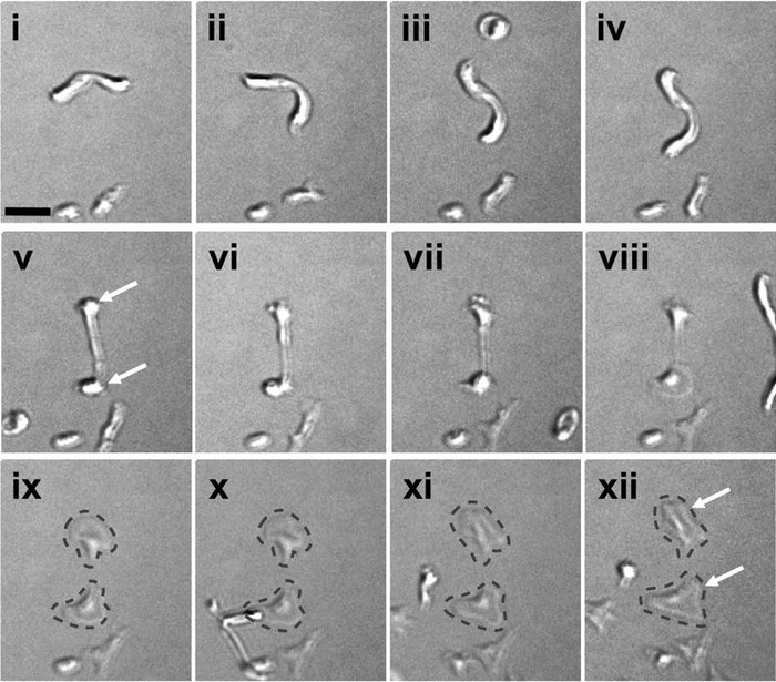 形成内陷膜后,巨核细胞就会行动起来了:它们开始向骨髓的血窦壁靠近,同时细胞里的微管蛋白也会开始发挥作用,就好像支帐篷的骨架一样,在巨核细胞的膜表面形成突起,一定程度后与巨核细胞分离,也就形成了前血小板(preplatelet)。