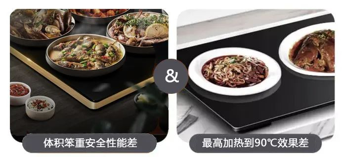 确实,市面上热菜板大多只能达到90℃,不仅加热效果不明显,而且很多热菜板也会因为容器不一而导致效果大打折扣!