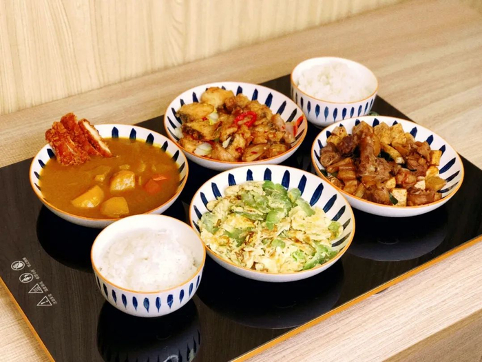想到还要一碟一碟拿去微波炉叮热好麻烦,就直接吃冷掉的菜了。