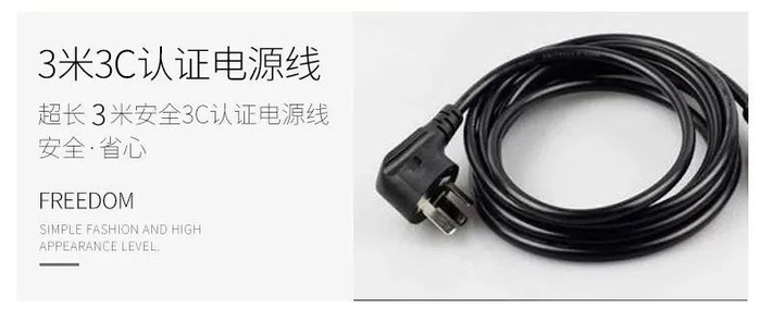超长的3米3C认证的电源线,不用担心出现线不够长的尴尬,安全省心!