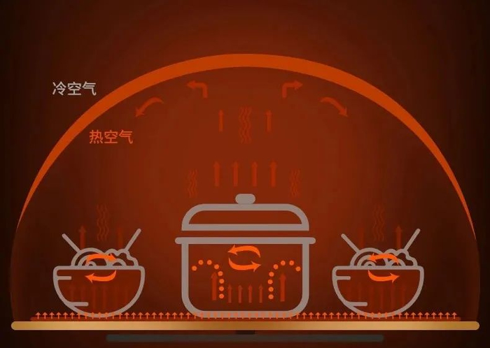 而艾尔温饭菜保温板自带TET垂直环热技术,它的原理相当于让食物处在一个气幕空间里。