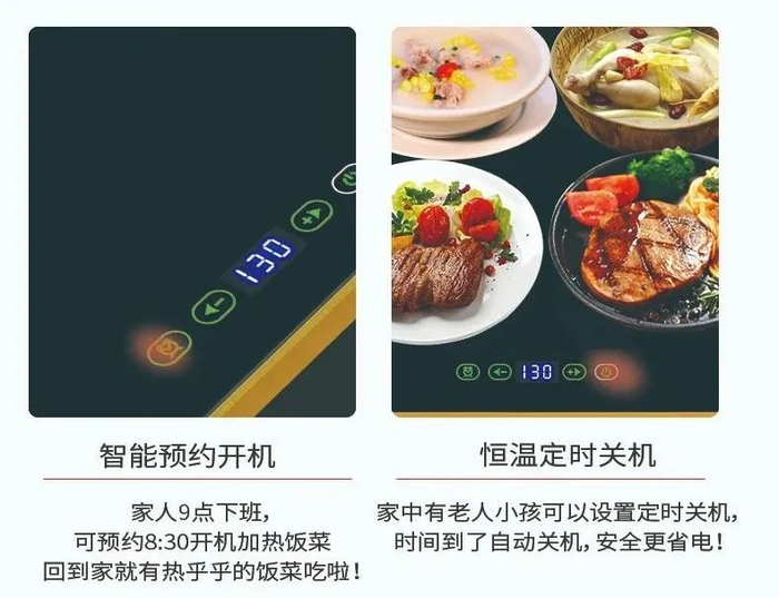 而且艾尔温饭菜保温板是通过微电脑温控装置,始终将食物保持在70~95度的最佳进食温度。