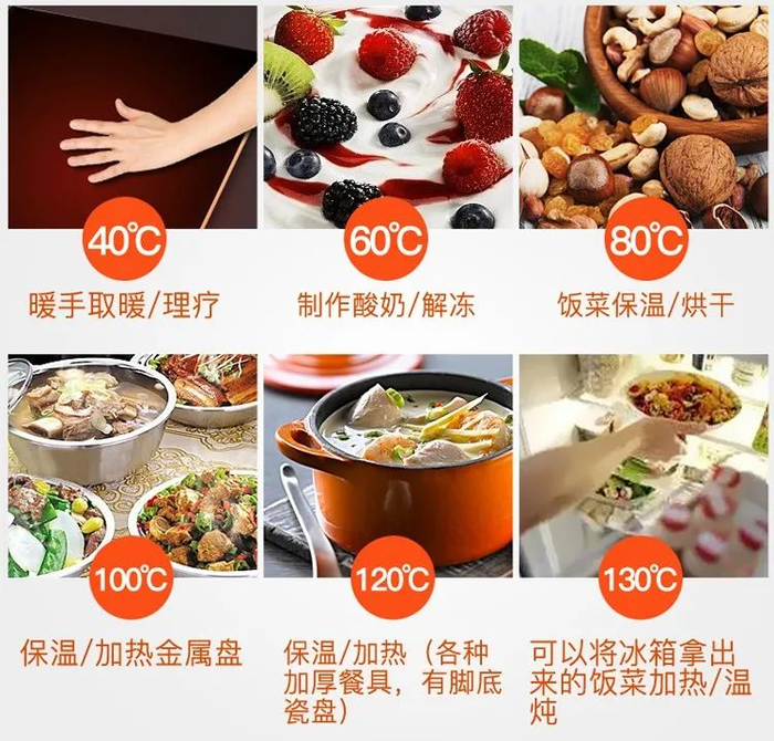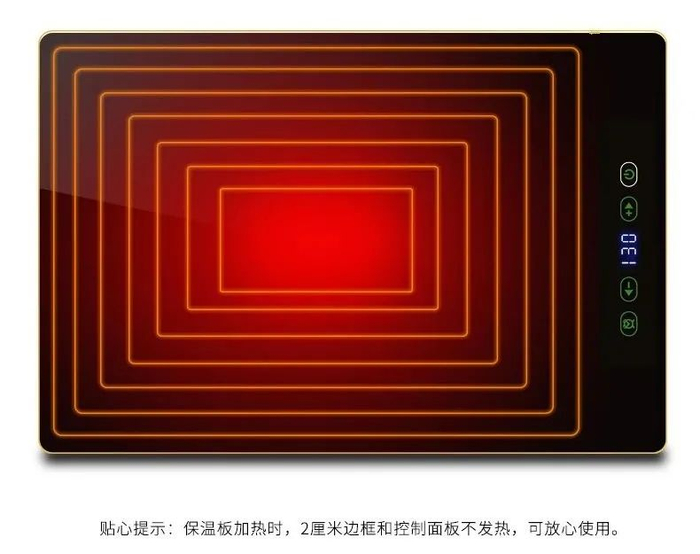 艾尔温饭菜保温板采用纳米航天发热技术,利用红外线加热,聚能无辐射更健康。