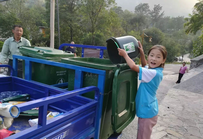 还有一件事让我印象极其深刻。有一个妇女出来倒垃圾,但垃圾是混合的。我们当时就跟她讲了,却没有得到回应。后来我们才知道她不会讲话,也听不到。巧的是,她女儿虽然不在村里,但在垃圾分类的微信群里。女儿说,她爸爸认识字。我们就用写和画的方式教她爸爸,第二天就分得清清楚楚。