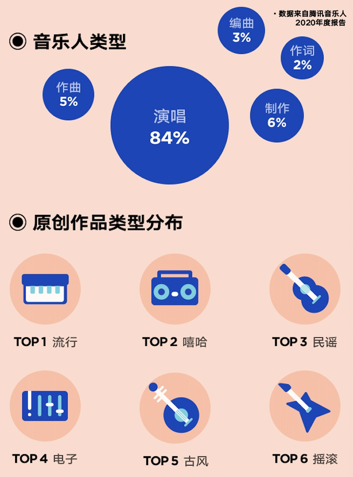 以演唱为主,腾讯音乐人在制作、作曲、编曲和作词上全面开花