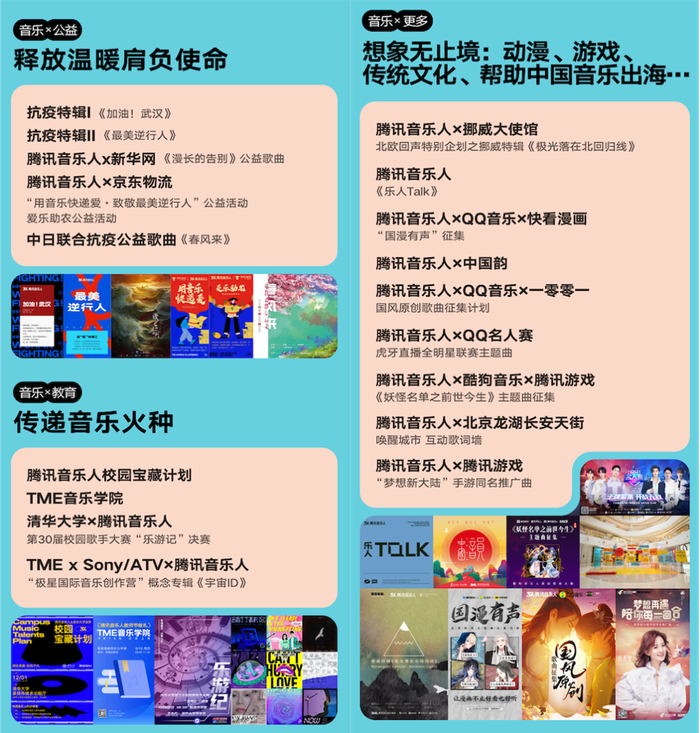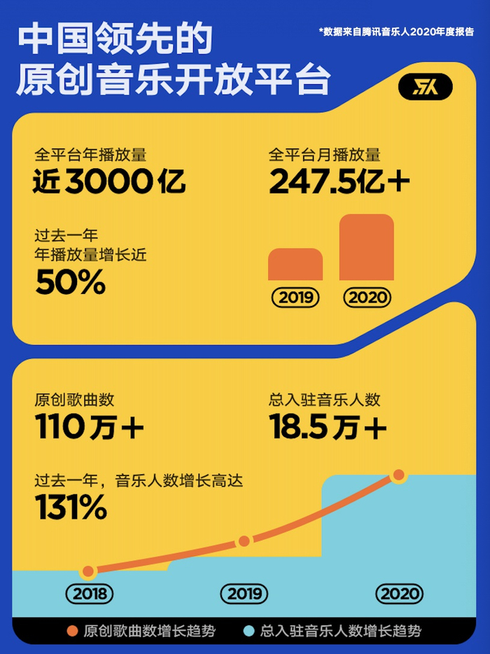 在原创音乐榜单方面,截止2020年12月31日,腾讯音乐人原创榜单共上线52期,上榜歌曲达2500首,完成52篇专题专访。