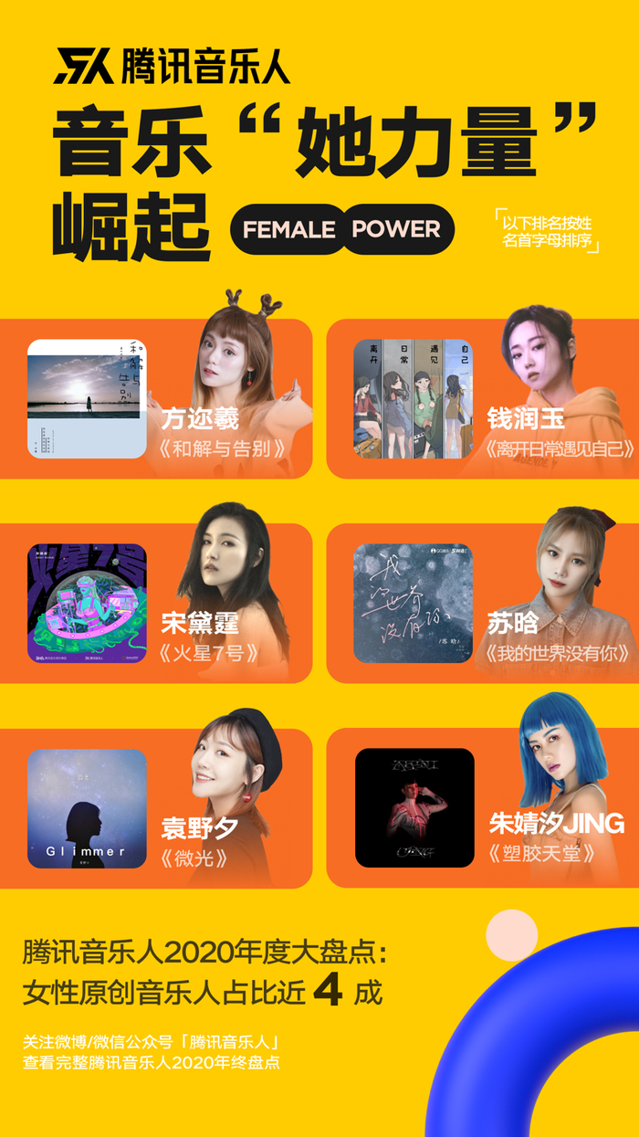 腾讯音乐人盘点:“她力量”崛起,年轻人成原创音乐创作主力
