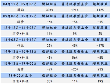 6)2019年6月至今,科技抱团,时长1年,配置比例从13.4%提升至23.7%。2019年下半年以来,科技制造行业迎来5G、新能源等新产业周期,国家对于创新支持亦达到前所未有的力度,科创板开板、创业板实施注册制、新三板精选层改革、再融资、重组等政策放开,形成风险偏好与基本面的双击。
