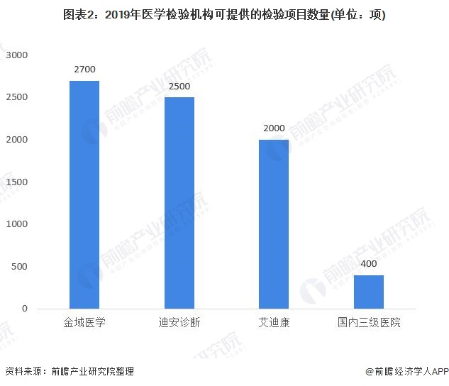 国外成熟的独立实验室可以提供近5000项。随着医学诊断技术的进步和发展,国内的第三方医学检验检测行业还有足够的成长空间。