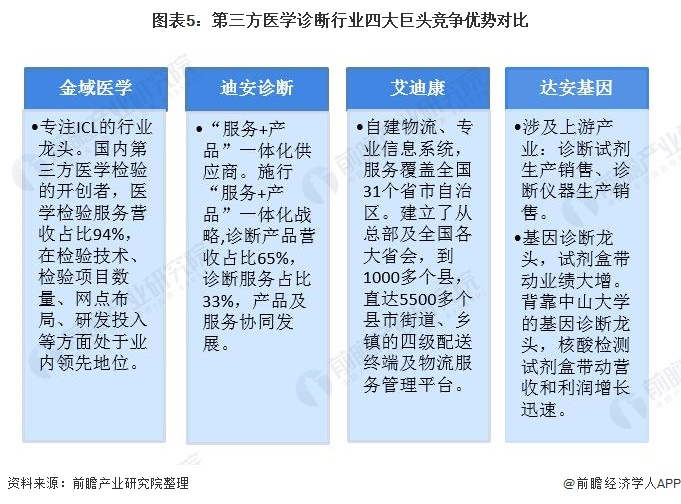 原标题:2020年中国第三方医学诊断行业市场竞争格局分析 四大龙头格局稳定 来源:前瞻网