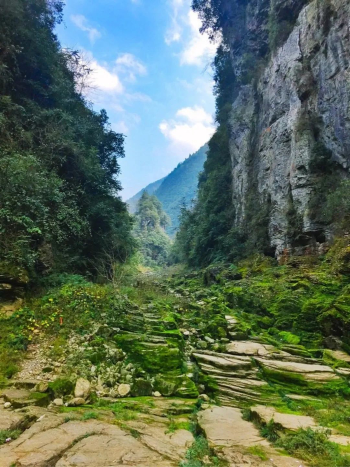 谷,则峡谷深深,为溯溪的乐土,形态多样。在利川与恩施交界之处雪照河出黑洞至车坝,由于河床不断下切,形成落差极大的幽深峡谷。两岸高山夹峙,河水湍急,总落差达到423.9米。其间,木贡附近易家湾之“跳鱼坊”,岩石横江,急流汹涌;朱家坝之蛮石阻塞,水由石隙中屈曲流出,自古有“天楼地枕”之称。