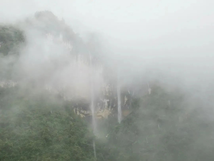 水,则清澈透明,为瀑布的天下,瀑布众多。瀑布多在暗河出口、岩溶山顶、山腰或河流的上游,类型多样,水量一般都不会太大,但却别有特色。