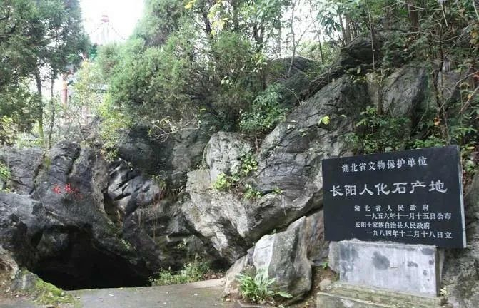 “长阳人”,距今约20万年,属早期智人,1956-1992年先后在长阳下钟家湾、津洋关果酒洞、鲢鱼山洞穴遗址发现的“长阳人”骨骼化石及古人类用火痕迹。