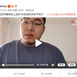 到2021年1月5日,知乎打脸拼多多对“底层拿命换钱”的“假辟谣”;再到1月10日,微博上名为“王太虚wray”的离职员工发布了一则《因为看到同时被抬上救护车我被拼多多开除了》的自述视频,剑指拼多多公司的压榨式工作制度,拼多多逐渐成为2021开年微博热搜的“钉子户”。