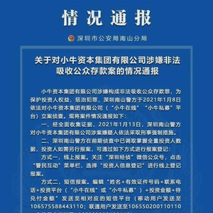 1月13日,深圳警方宣布:正式立案调查小牛资本集团,并对相关涉案高管采取刑事强制措施!