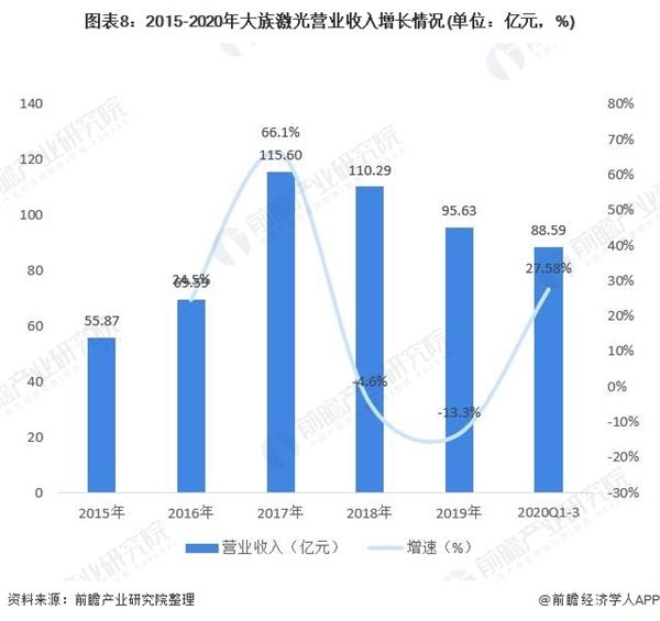 在激光加工设备领域,大族激光公司成为行业内唯一入选国家工信部智能制造试点示范项目名单的企业,竞争力较强,业绩增长明显,2020年前三季度公司营业收入达88.59亿元,同比增长27.58%。