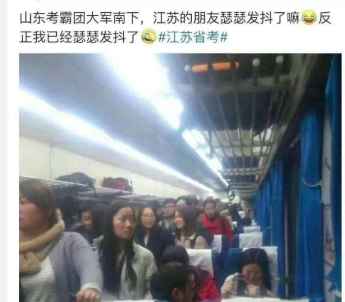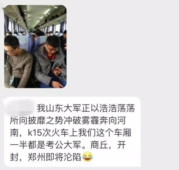 广东省考,一车厢6个铺,一聊天,4个都是山东去广东考试的。